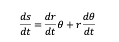 Lets start with distance(s) is equal to r (radius) * angular displacement, the derivative of the function is shown below with the product rule.